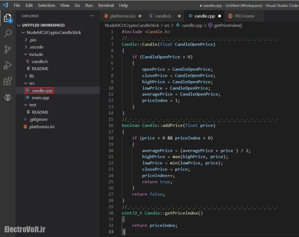 در این پروژه قیمت بیت کوین در SD card نیز ذخیره می گردد اگر نیازی به این کار ندارید خطوط برنامه مربوط به SD card را کامنت کنید. همچنین میتوانید زمان نمایش هر کندل را در چارت با تغییر مقادیر REQUEST_PERIOD_MS و CANDLE_PERIOD_MS درون فایل chart.h تغییر دهید. این پروژه به سبکی متفاوت و جدید در سایت الکترو ولت برای شما ارائه شده است. لطفا نظر خود را در مورد ادامه این گونه پست ها و همچنین تجربیات خود را در کامنت همین پست برای ما بنویسید. موفق باشید.